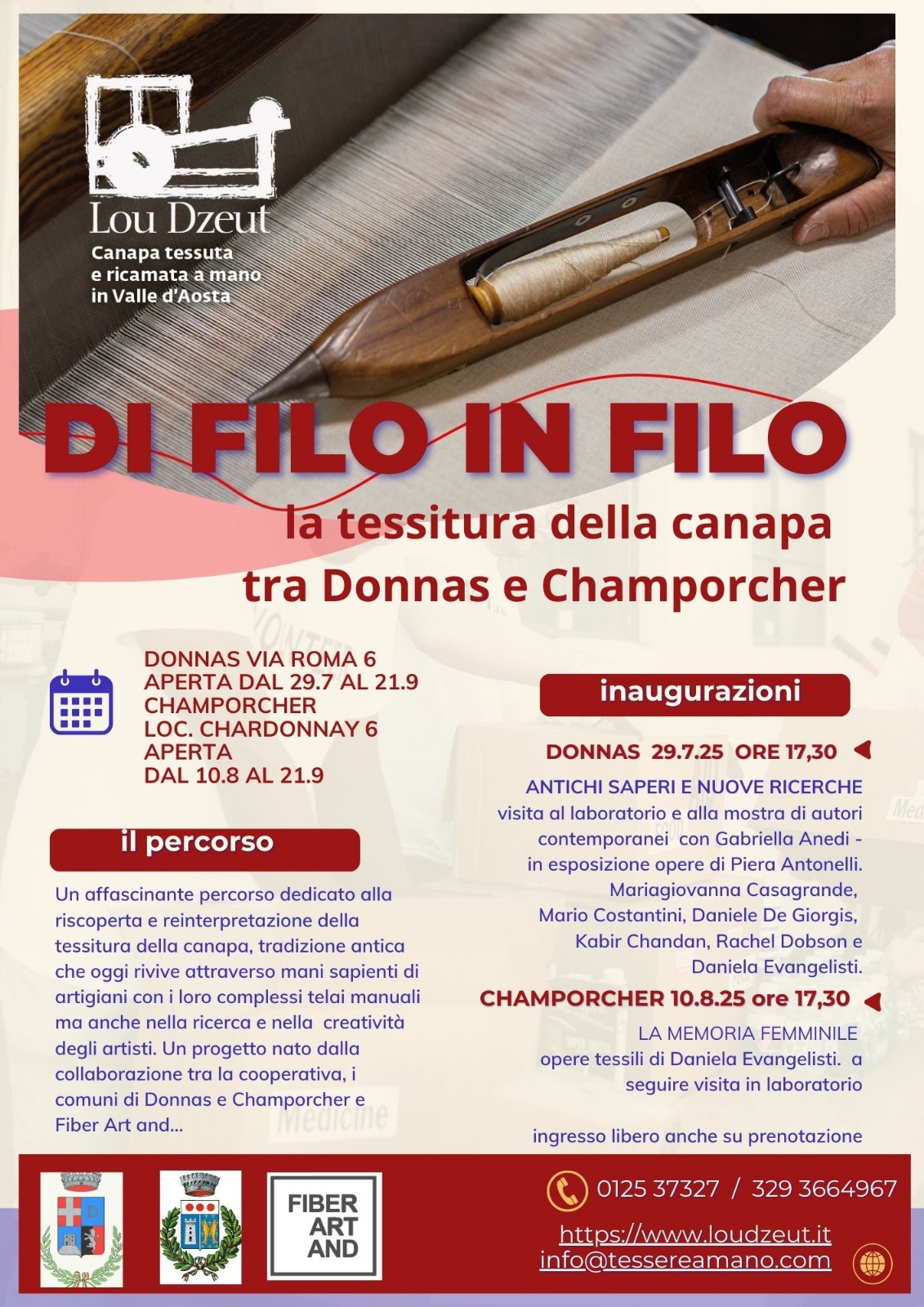 Mostra organizzata dalle artigiane della Cooperativa Lou Dzeut, allestita presso i locali della Maison de Thomas (Frazione Chardonney n. 6) e visitabile fino al 21 settembre nei consueti orari di apertura (tutti i giorni dalle ore 9:30 alle 12:00 e dalle 14:30 alle 17:00).