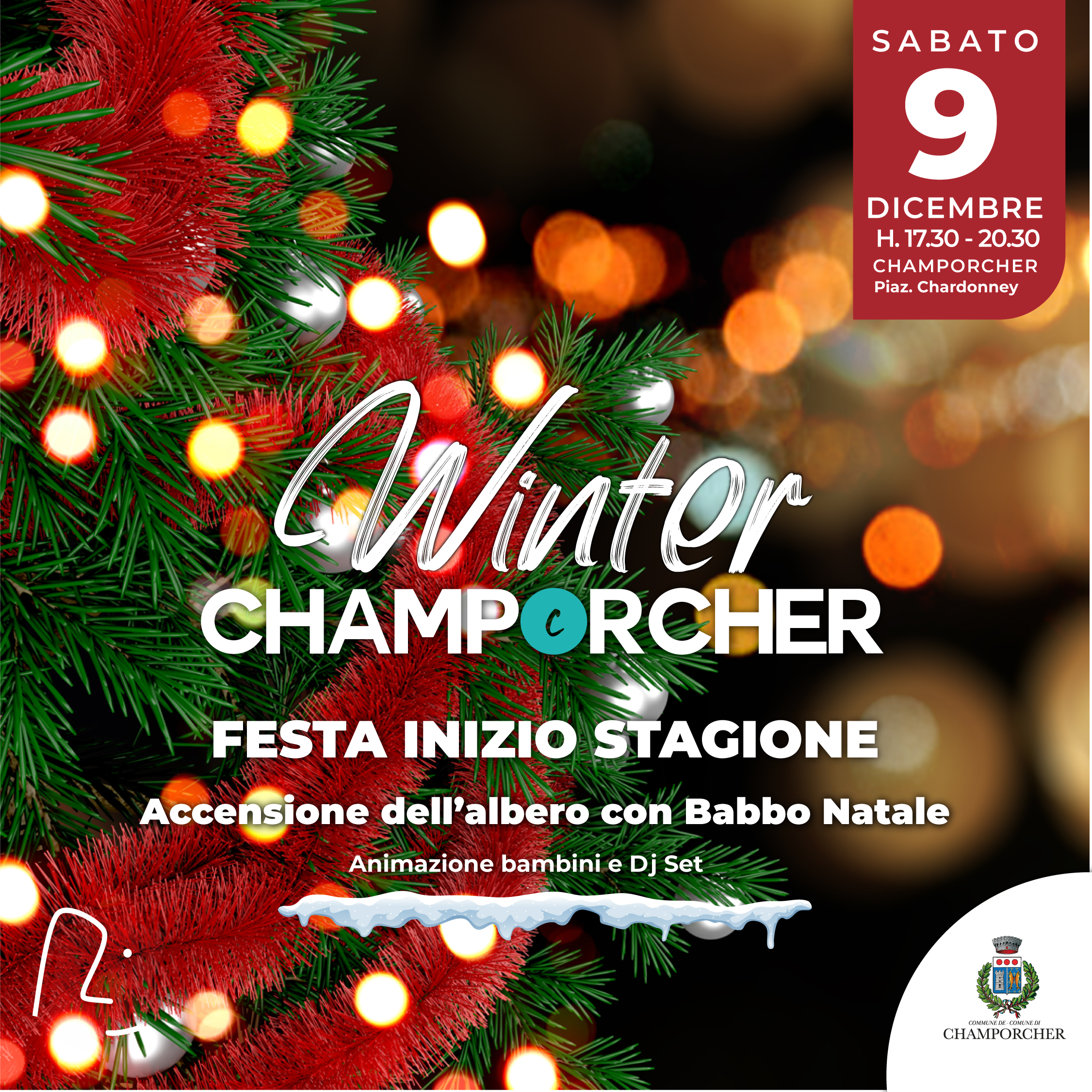 Sabato 9 dicembre, sul piazzale di Chardonney, dalle 17:30 alle 20:30, si svolgerà la tradizionale festa di apertura stagione, con accensione dell'albero di Natale e DJ-Set. 🎄🎶