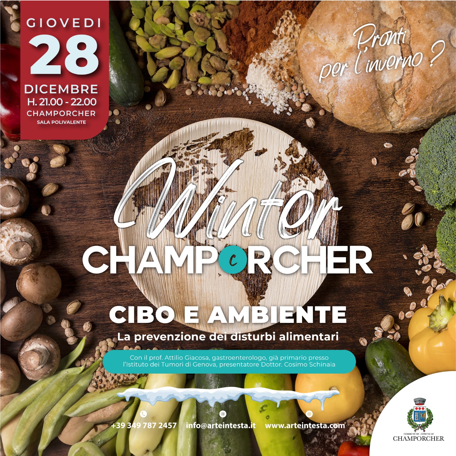 Alle ore 21:00, al salone polivalente in frazione Vignat, "Cibo e ambiente: la prevenzione dei disturbi alimentari", conferenza con il Prof. Attilio Giacosa, in collaborazione con il Dottor Cosimo Schinaia👨⚕🥗
