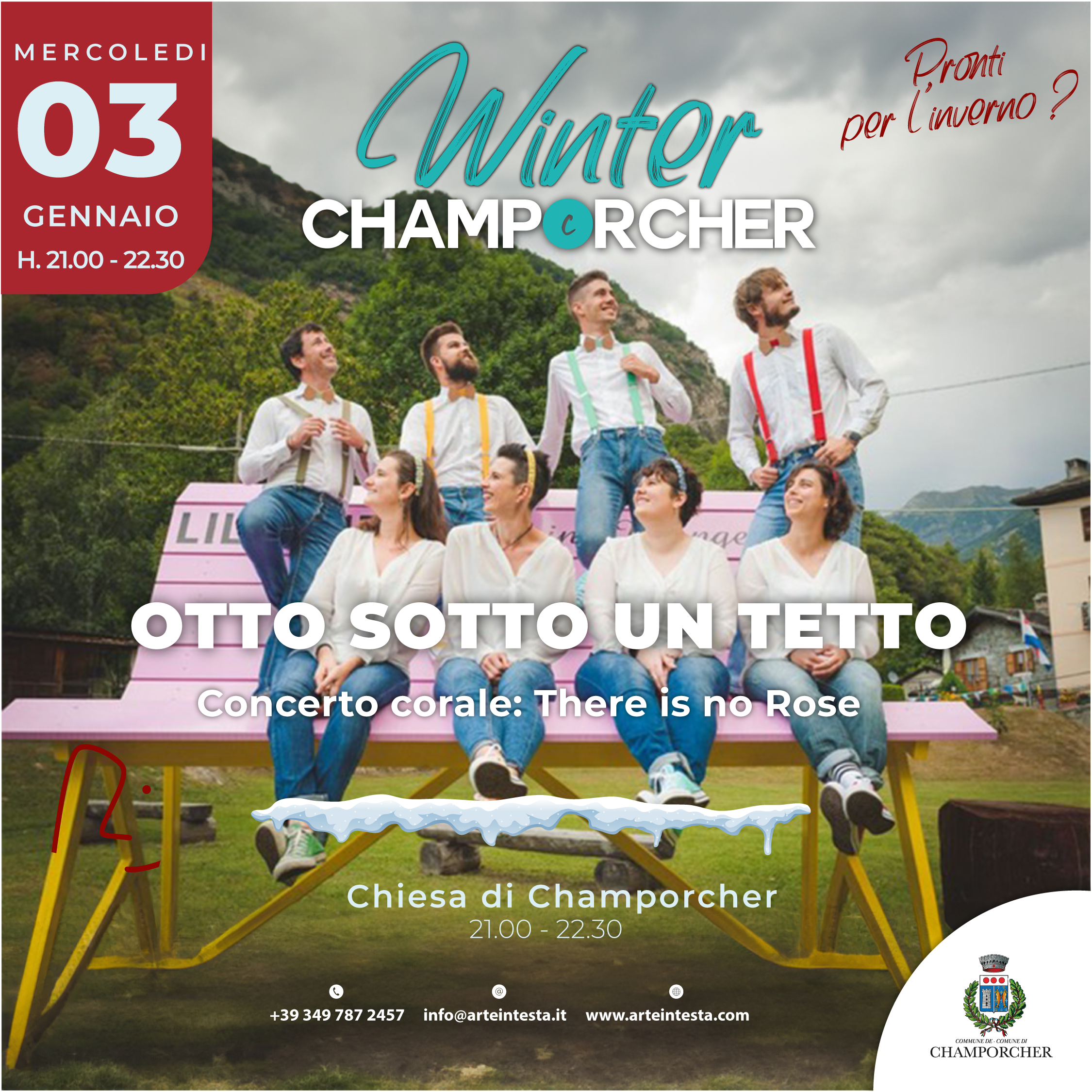 Alle ore 21:00, presso la chiesa parrocchiale di Champorcher, concerto corale "There is no rose" del gruppo "Otto sotto un tetto"🎤🎶