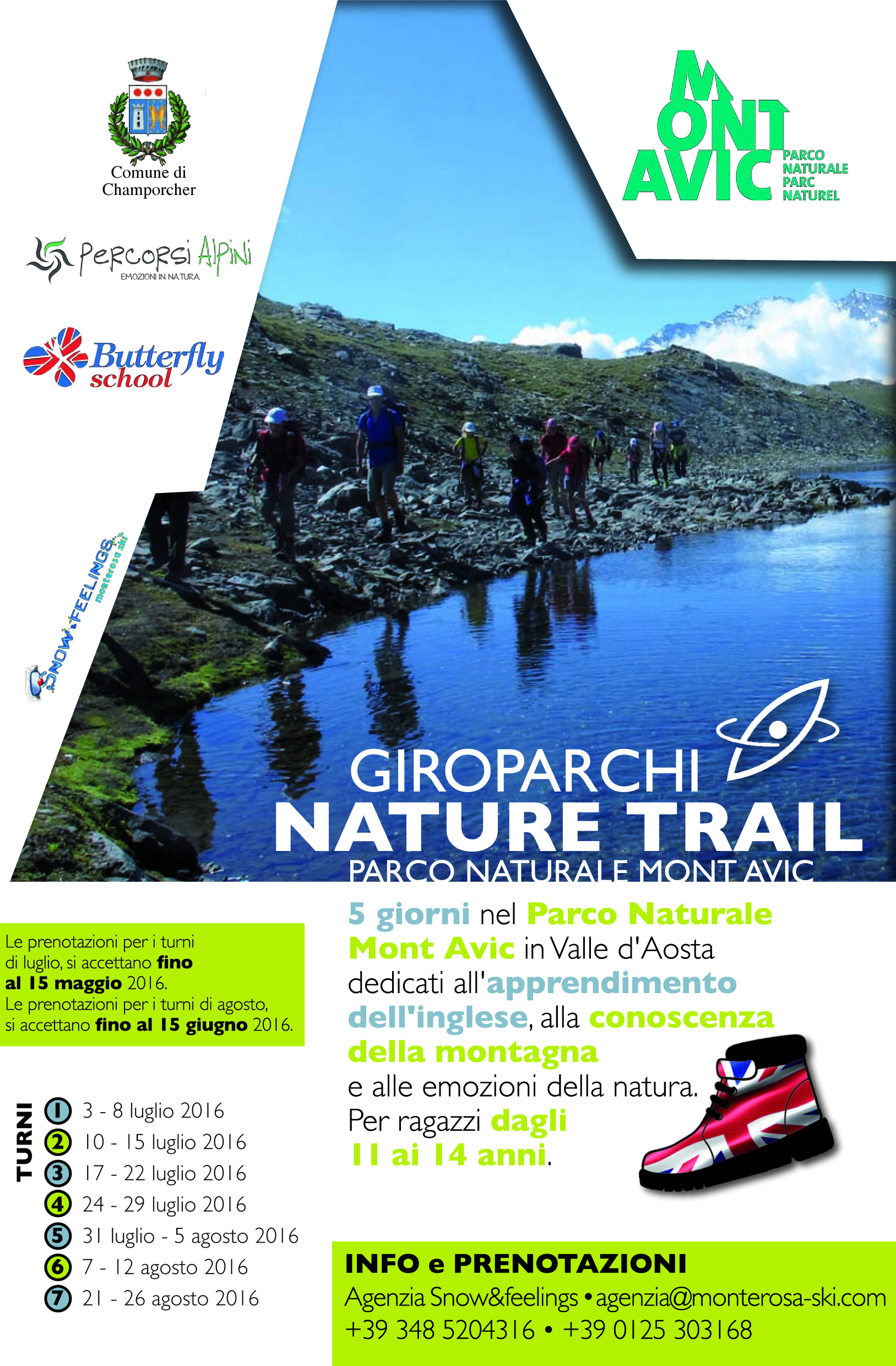 Il comune di Champorcher e il Parco Naturale del Mont Avic sostengono attraverso il loro patrocinio l'iniziativa di animazione naturalistica e insegnamento linguistico, nata da un'idea di Fondation Gran Paradis attraverso il progetto GiroParchi. Il progetto è rivolto a ragazzi e ragazze tra gli 11 e 14 anni i quali avranno la possibilità di potenziare il proprio inglese con una full immersion in un contesto divertente e coinvolgente, lontano dai banchi di scuola.